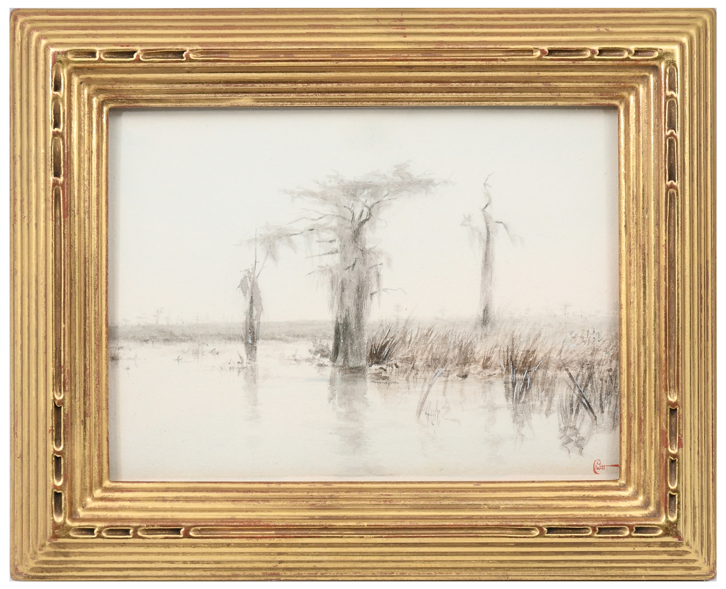CLUETT, Sanford Lockwood, (American, 1874-1968): ''Edge of the Everglades'', Watercolor, 5'' x 7'', signed lower right, encased in a fine gilded and carved frame, 8'' x 9.75''.