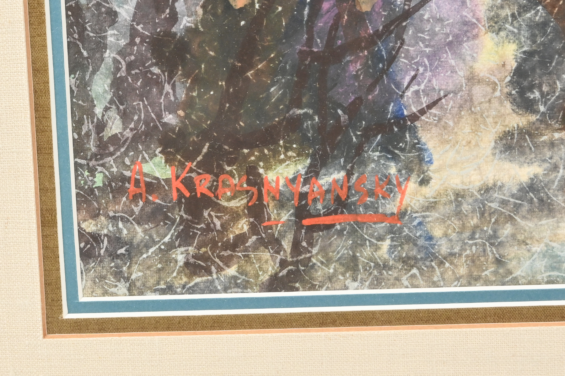KRASNYANSKY, Anatol, (Russian, b. 1930): Sunset Glow, City Street, Watercolor/Gouache, sight size 25'' x 18'', signed lower left, framed, 33'' x 25.5''.