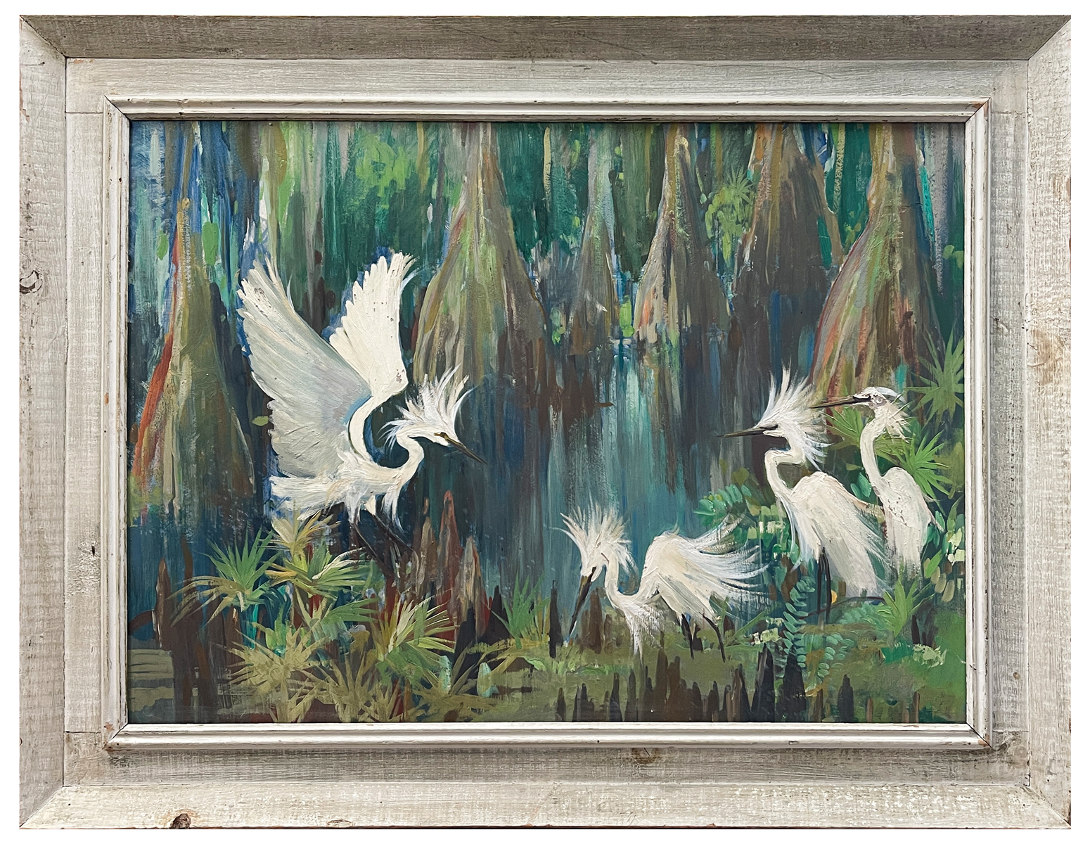 MCGIBBON BROWN, James, (American, 1892-1974): ''Egrets'', Oil/Masonite, 26'' x 36'', signed lower right, framed, 33.5'' x 43.75''.